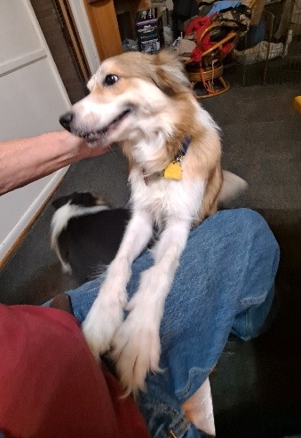 Paris, Four-year-old female Mixed breed. I think the Japanese have a saying “more beautiful for having been broken”. I think this saying is applicable to Paris. We were told she started life in a home with many dogs and eventually ended up in a shelter. She was adopted but after a year was returned. She then came to us as a sheltie mix. She isn’t a good candidate for placement, and we have her in our Forever Foster program. She would crawl on her tummy when leashed. She now will only go out when we are in the yard, or she is on a leash. She has made progress, but we do not expect her to make much more. She will come for affection and like most dogs from a hoarding situation is very alpha. She will push other dogs away to get attention, but her attention is short lived. She likes tummy rubs and petting but is very afraid outside her comfort zone.