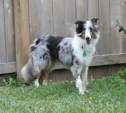 Eli is a beautiful 12 year old blue merle sheltie. He came from a breeding kennel and spends all his time in his crate with the door open. He will go outside to potty on his own but does not interact with his foster parents. He has a beautiful coat. Shorty after he came to us, our vet determined he had severe dental disease, and he lost all his teeth. He will be in our forever foster program.